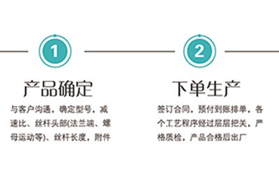 首先要确定产品,与客户沟通,确定型号,减速比、丝杆头部(法兰端、螺母运动等)、丝杆长度,附件;之后是下单生产,签订合同,预付到账排单,各个工艺程序经过层层把关,严格质检,产品合格后出厂;闪电发货,标准…