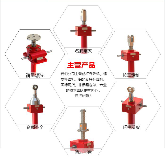 星空体育,星空(中国)机械主营的产品,丝杆升降机是其中一款,丝杆升降机分为多种系列,多种系列又分为多种型号,主要的系列有,SJA螺旋升降机、SJB滚珠丝杆升降机、SWL蜗轮螺杆升降机、JW蜗轮丝杆升降机、SJ(HK)蜗轮丝杠升降机、SL锥齿轮丝杠升降机、TP螺旋丝杠升降机、SJ、MA螺旋升降机