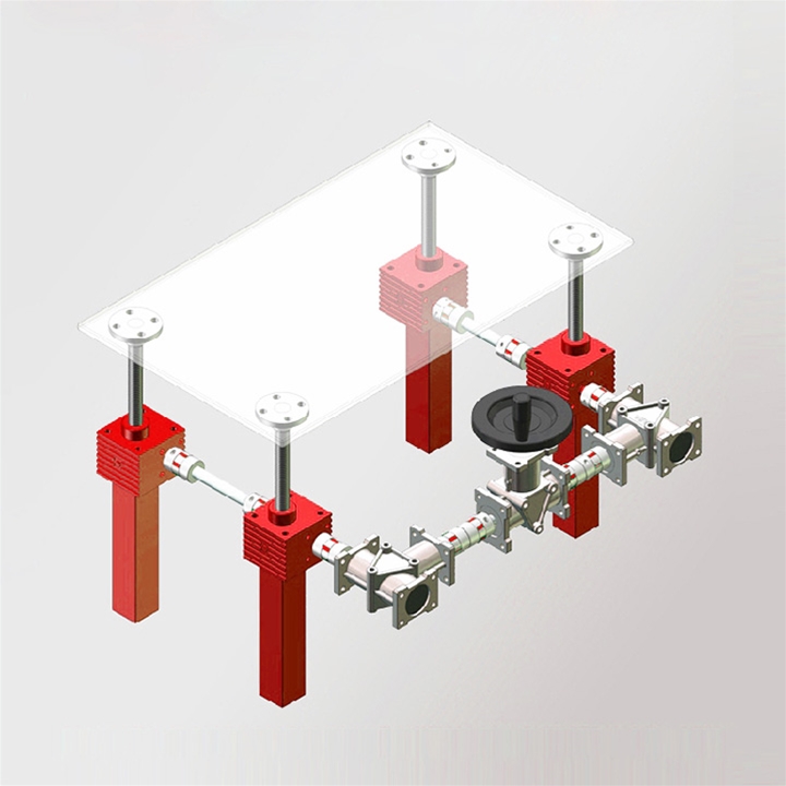 –同步,同一电机可同时驱动多台螺旋升降机,机械同步