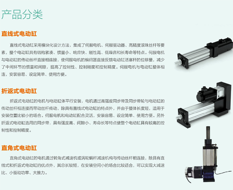 产品详细介绍、优点: 电动缸是电机正反转通过丝杠和丝杠副的机械运动转换为往返直线运动。利用伺服电机的闭环控制特点,很方便的实现对推力、速度和位置的精密控制;由于其控制、使用的方便性,将实现气缸和液压缸传动所不能实现的精密运动控制,我公司主营电动缸、电动平台、自由度平台、伺服电动控制系统等。